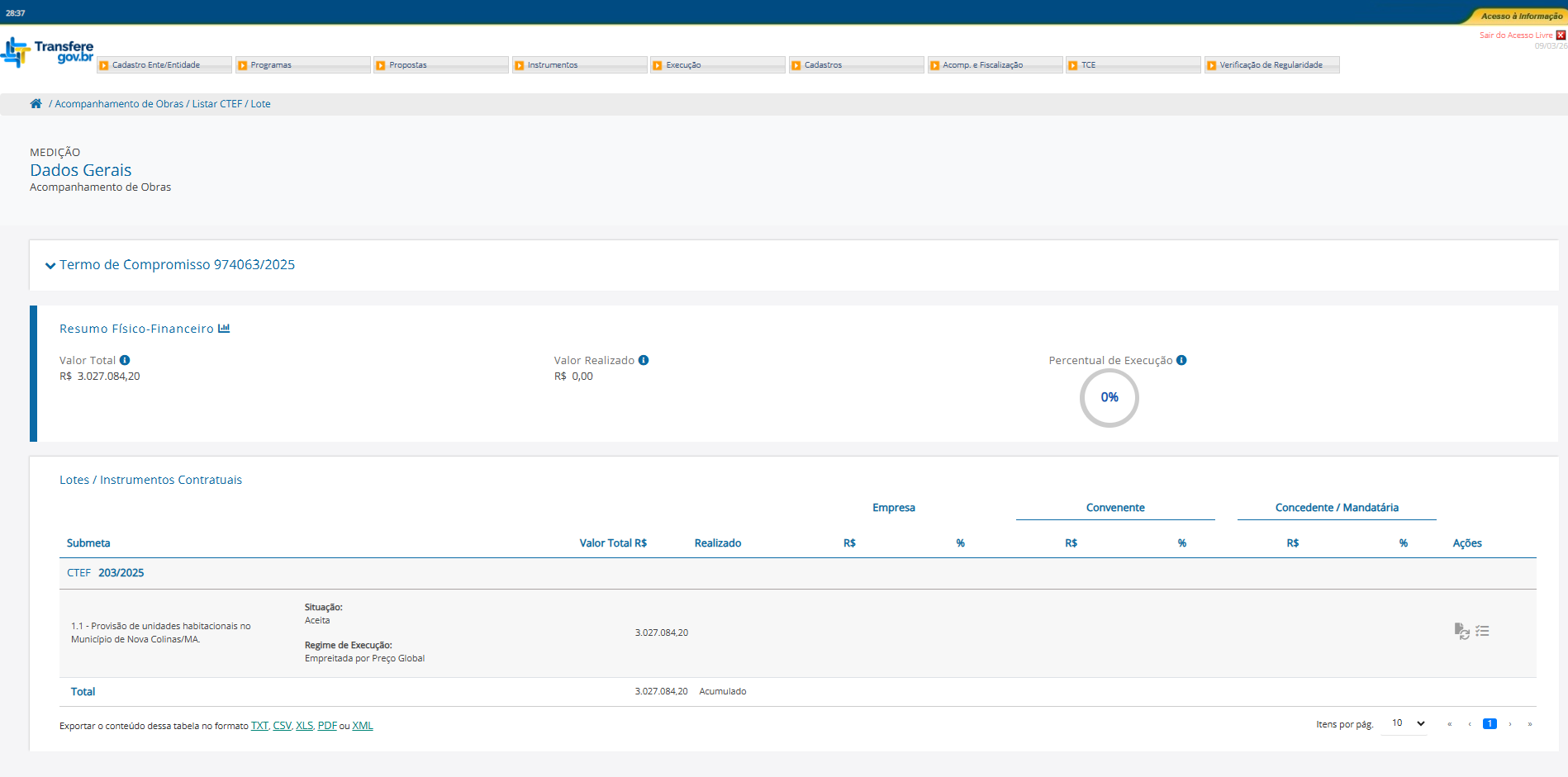 PERCENTUAL DE EXECUÇÃO 09/03/2026 Baixar
